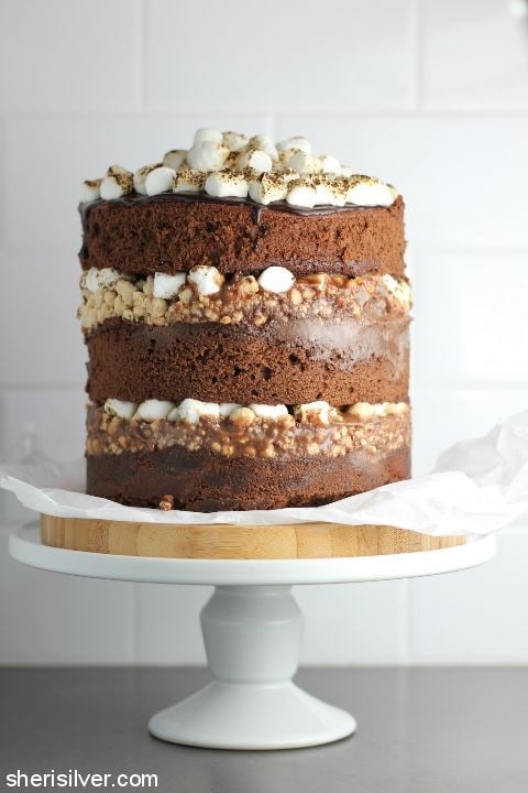 Milk Bar Chocolate Malt Cake Review / This rich, fudgy, gooey layer cake is packed with malted fudge, malted milk crumbs, and charred marshmallows — plus lots of malted chocolate frosting.