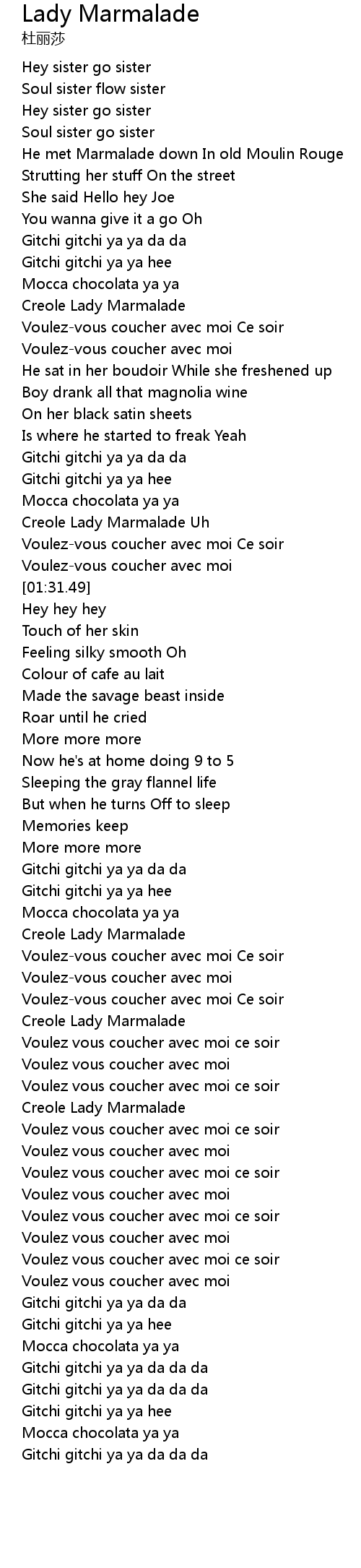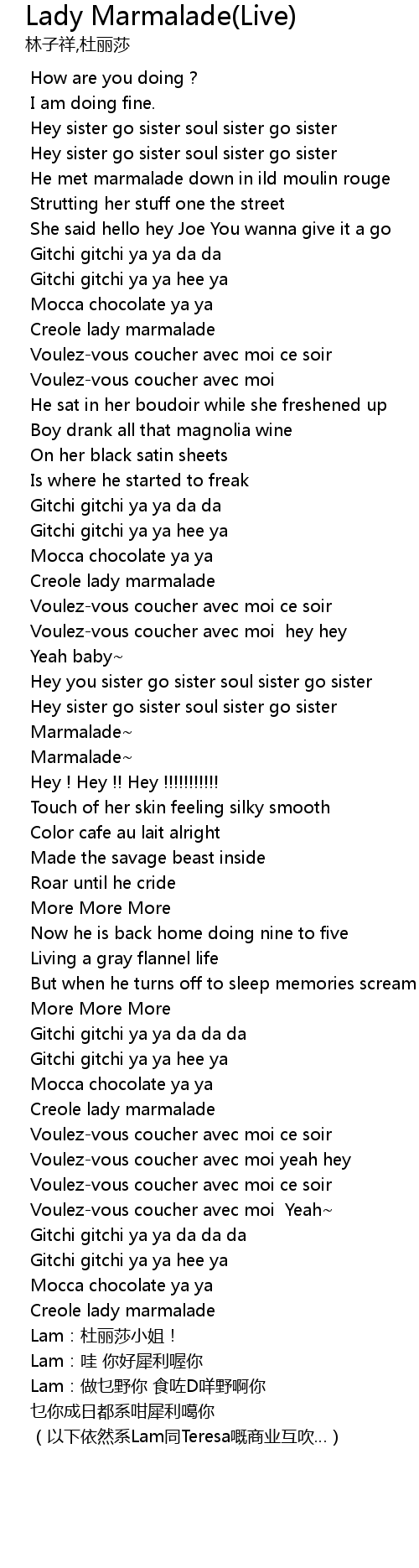 Your Lady Marmalade Lyrics pic are be had in this site. Lady Marmalade Lyrics are a topic that is being searched for and appreciated by netizens these days. You can Get the Lady Marmalade Lyrics here. Download all royalty-free pic.